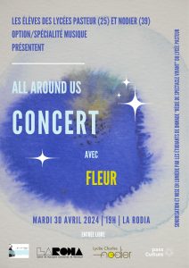 Une communication de notre collègue Cécile Delavelle en charge des options et spécialités musique aux lycées Pasteur et Nodier. Le traditionnel concert des élèves option et /ou spécialité musique des lycées Pasteur et Nodier à la Rodia en partenariat avec les étudiants de DNMADE « Régie de spectacle vivant » et l’artiste « Fleur » approche! …