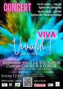 Annonce concert d’un de nos collègues de l’académie Le Chœur « le Tourdion » de Dole se produira en Janvier pour un concert nommé Viva Vivaldi. Ce concert d’une heure permettra de redécouvrir le Gloria de Vivaldi qui sera interprété par une soixantaine de choristes, une petite formation orchestrale de quinze cordes et …