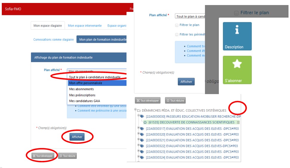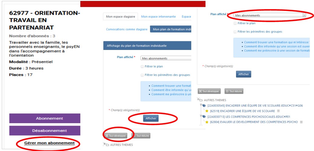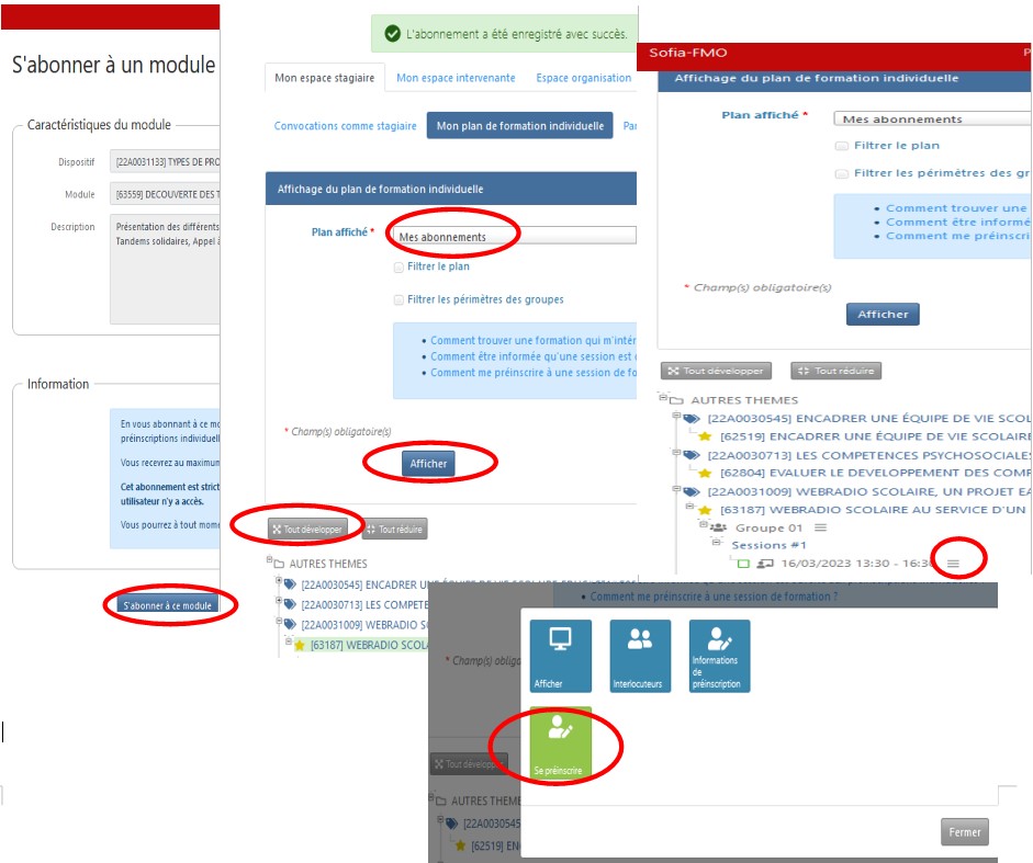 Abonnement à une session, préinscription et suivi de son plan individuel de formation
