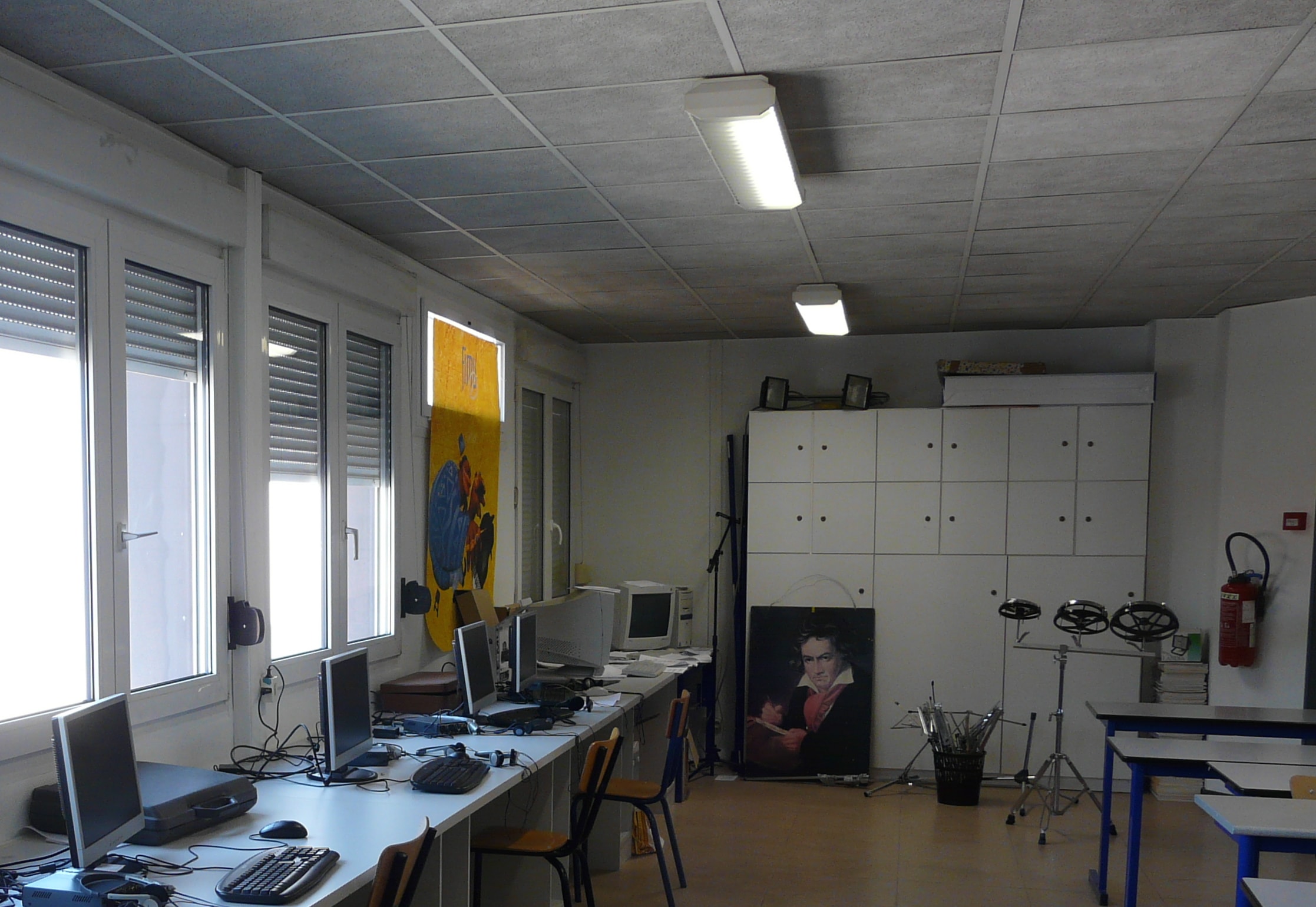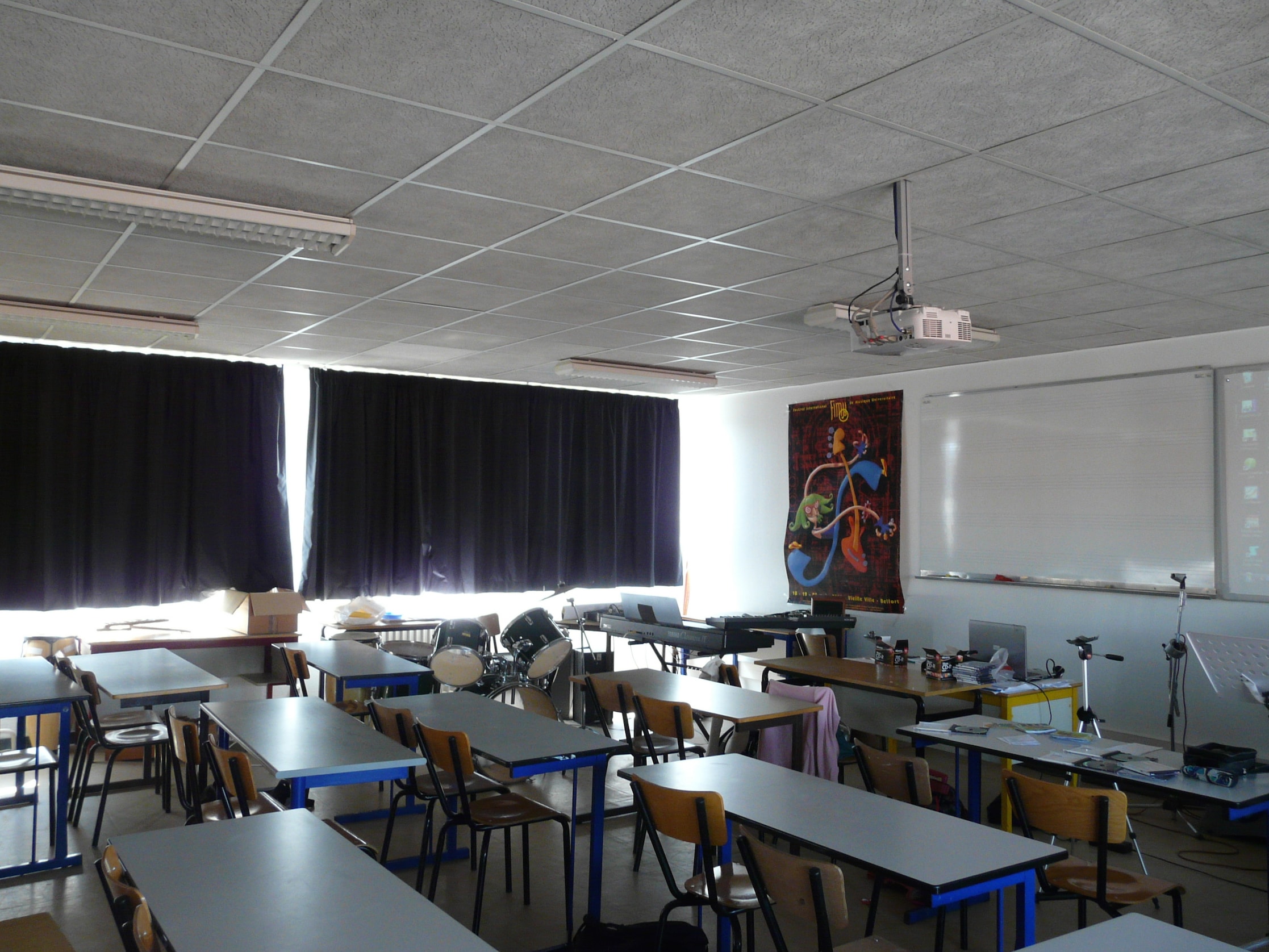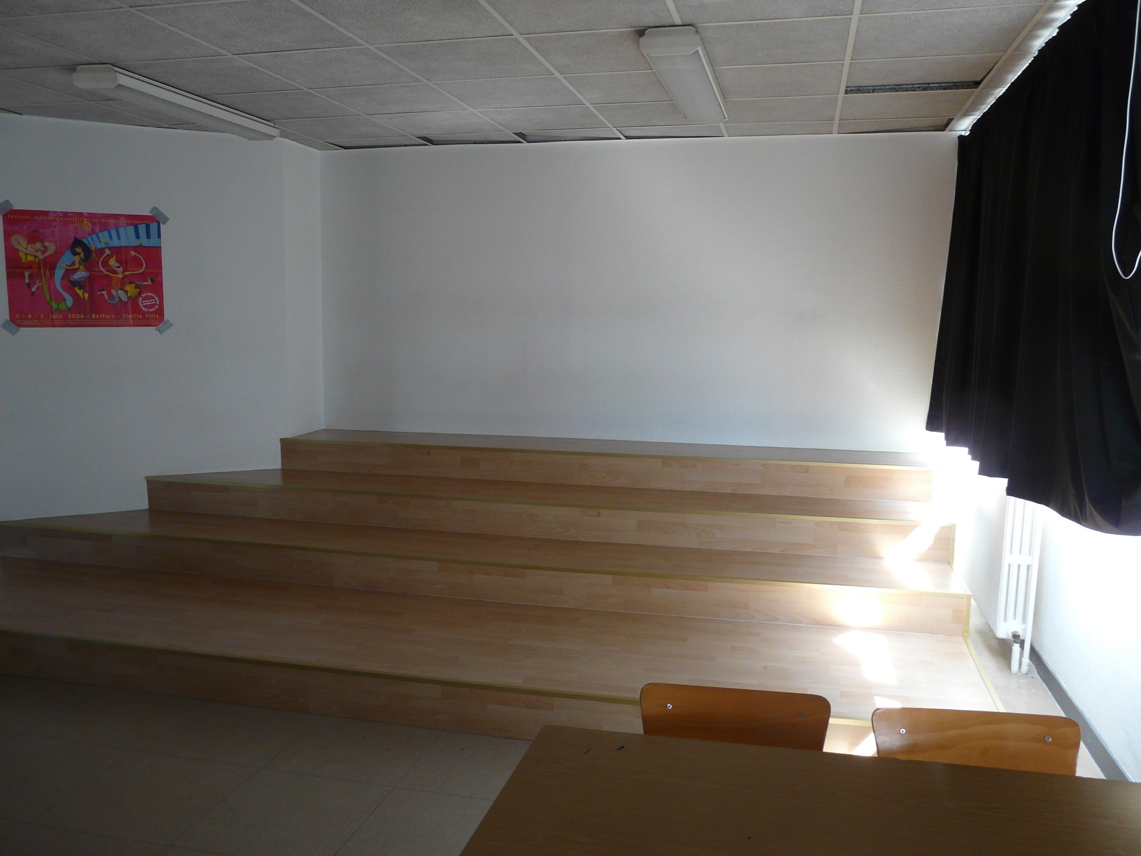 La salle d’Education musicale et chant choral du collège Arthur Rimbaud à Belfort est divisée en 3 parties :