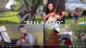 Les enseignants de la classe orchestre « GAM » (Groupe Artistique Musical) du lycée ont proposé aux élèves de seconde M (tous débutants et sans instrument lors du confinement) de créer un « orchestre virtuel participatif » autour de la chanson revisitée Bella Ciao. Dalia, Andy et Manelle ont inventé et chanté en plusieurs langues (français, espagnol, anglais et coréen), et d’autres élèves ont enregistré sur la bande témoin des bruitages rythmiques à partir d’ustensiles de la maison : « Adieu Ma Belle », Cette chanson triste raconte l’histoire d’un couple de personnes âgées dont la femme meurt du Covid. Son mari décide alors de la rejoindre… Instrumentistes : Yanis au piano, accompagné par les professeurs : Béatrice Chevillard à l’alto ; Marc Togonal au violon ; Agnès Albersammer à la flûte ; Benoît Serrier : Arrangements, Mixage (Cubase 10.5 )