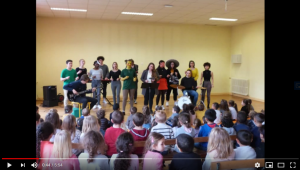 Le professeur d’EMCC, Monsieur Cassard, a proposé aux élèves volontaires de réécrire/varier le texte d’une chanson de leur choix, en s’inspirant de ce que chacun vit en confinement, puis  de poster leurs interprétations sur un padlet. Florilège de propositions, dont celle-ci, sur une chanson de Mickaël Miro, interprétée par un duo féminin : Camille, élève de 5ème, et sa sœur Manon ancienne élève du collège, désormais en seconde.