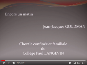 Mon amant de Saint-Jean Choristes plus nombreux, des élèves frileux au départ se sont lancés après avoir aimé le rendu du 1er challenge ! Encore un matin – JJ Goldman Avec la participation des familles des choristes